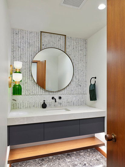 Hidden doors, cleverly built using millwork and specialty hardware, add an element of fun and surprise to the home. The Love Renovation also features extensive use of specialty tiles for flooring and detailing, adding a touch of luxury to every corner.